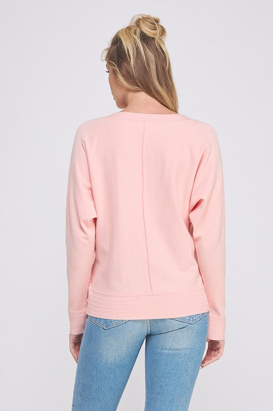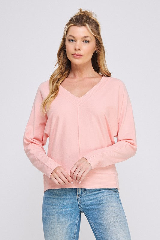 V Neck Fine Gauge Pullover with Center Seam and Banded Detail, China