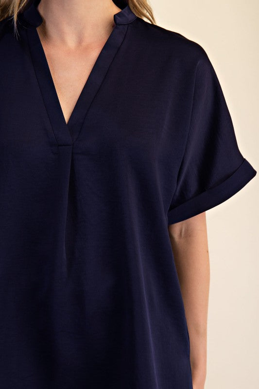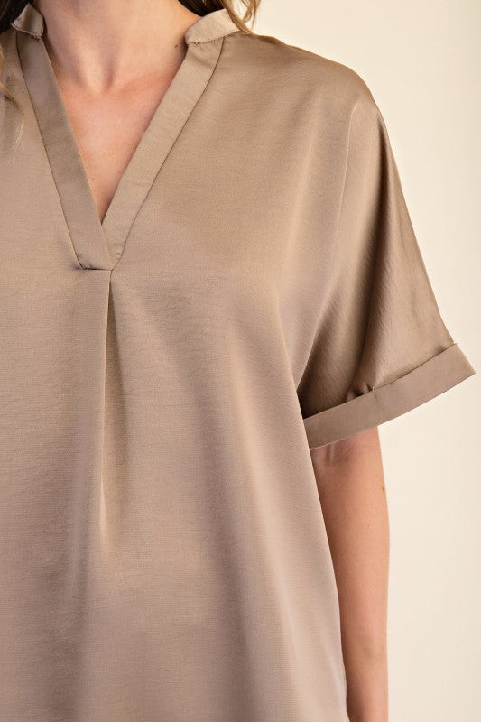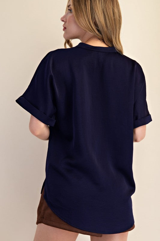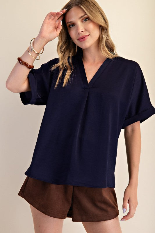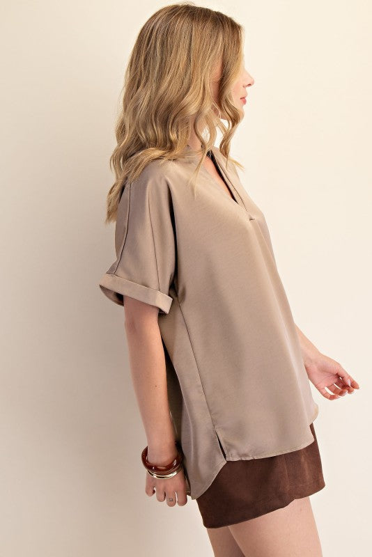 V-Neck Placket Cuffs Sleeve Top Model Height: 5'8" Wearing Size Small