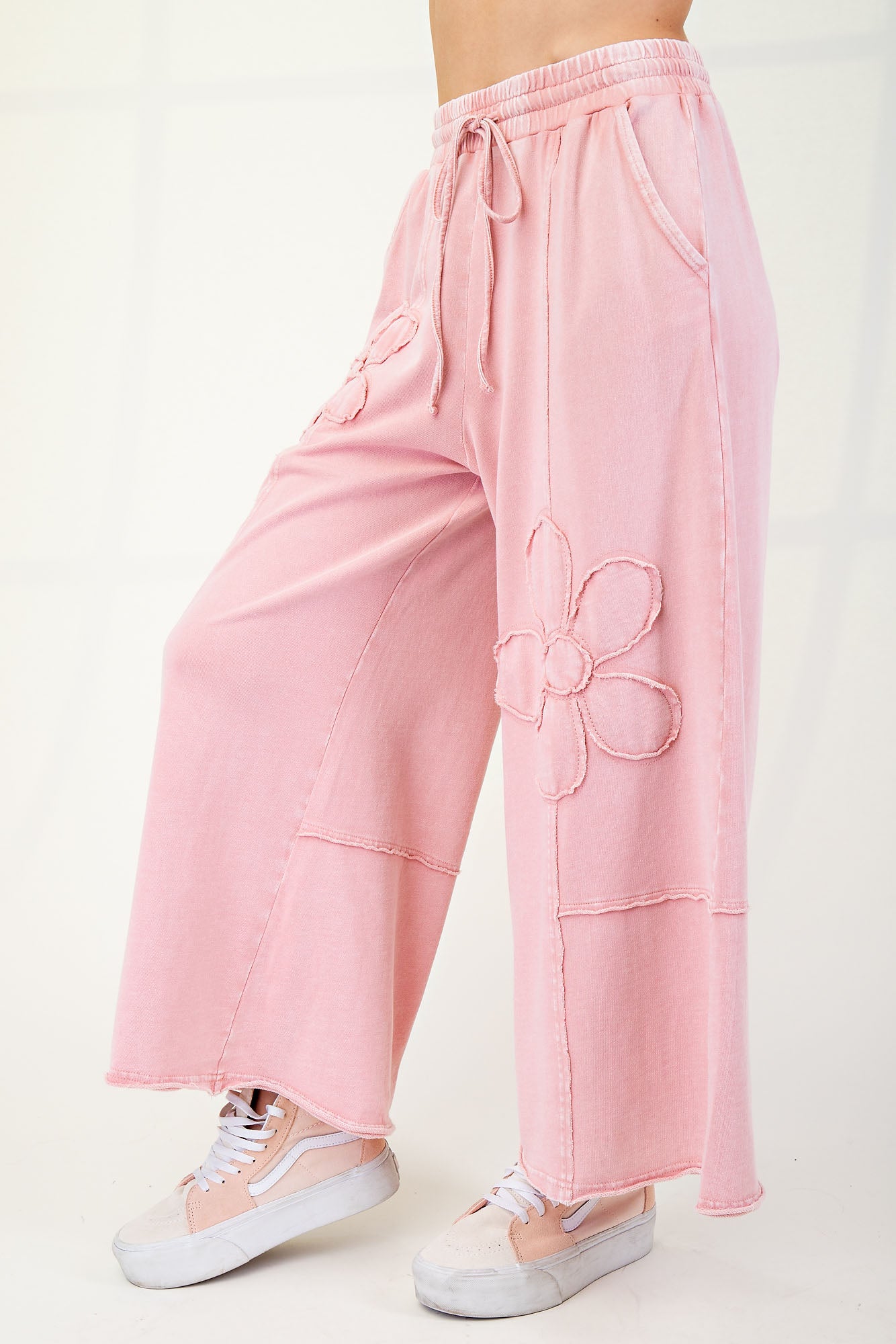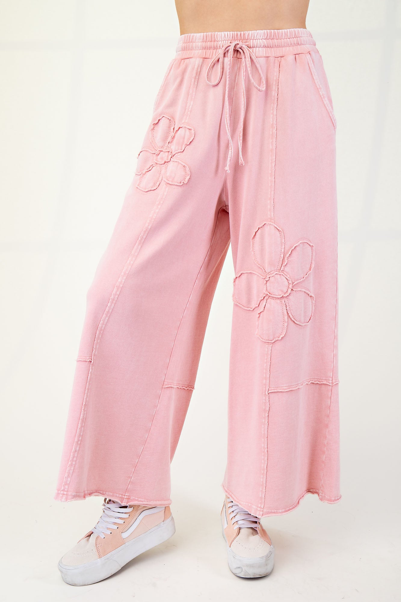 FLOWER PATCH MINERAL WASHED TERRY KNIT PANTS