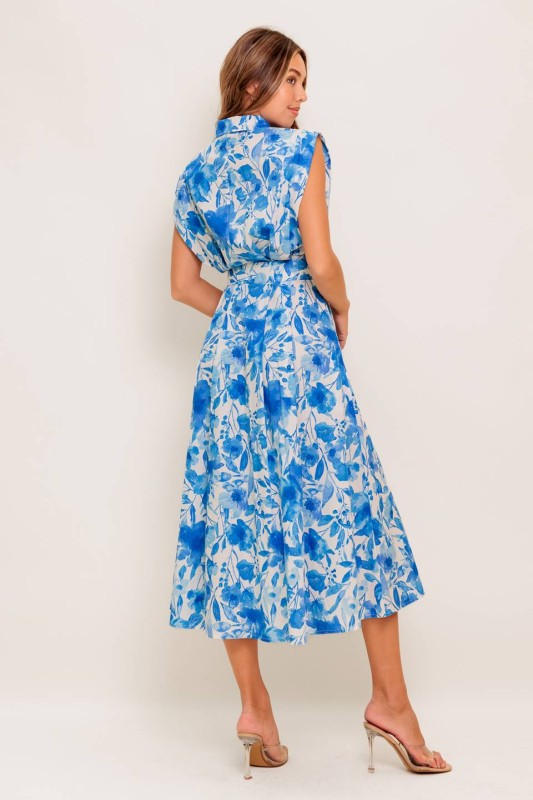A printed woven midi dress featuring collar, short sleeve, button down, self belt and full skirt Details: Self : 100% Cotton Size & Fit - Model is 5'8" And Wearing Size Small - Measurements Taken From Size Small - Approx. Length: 52"